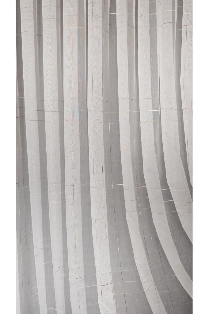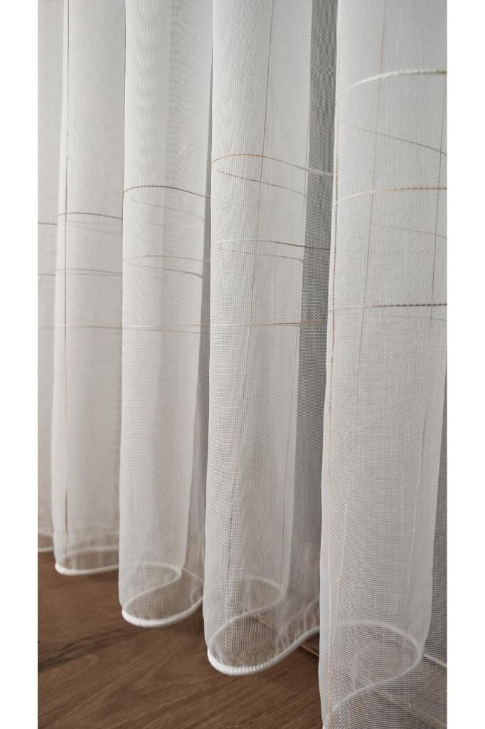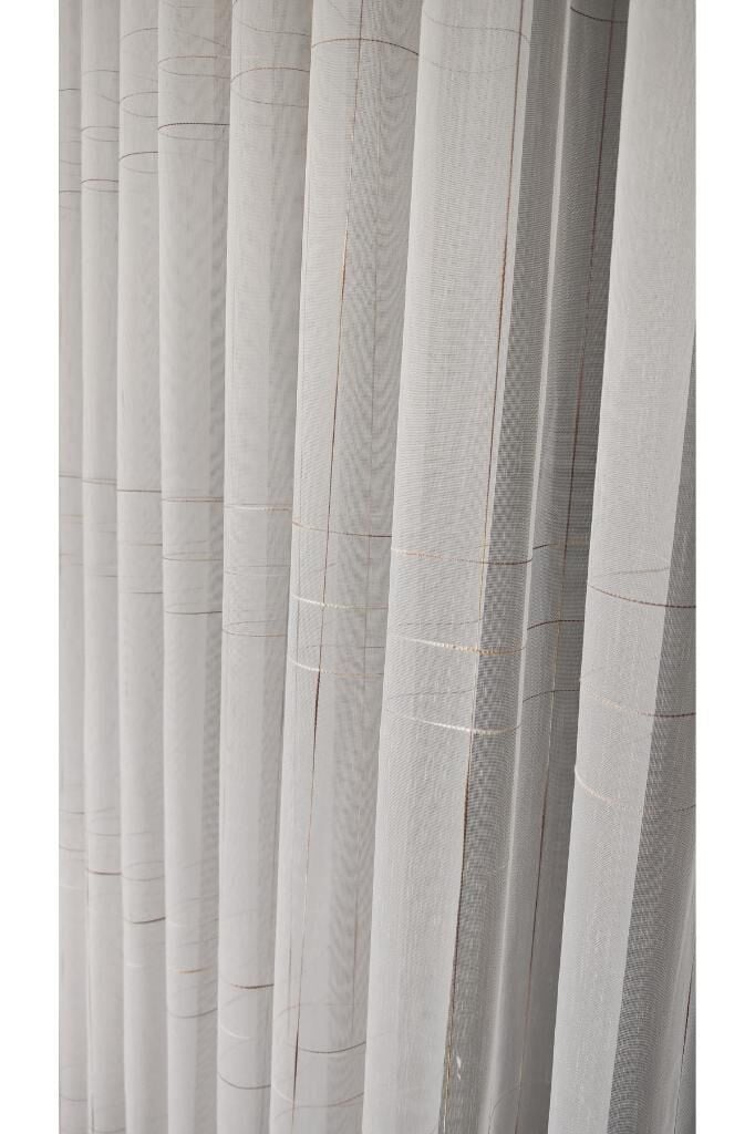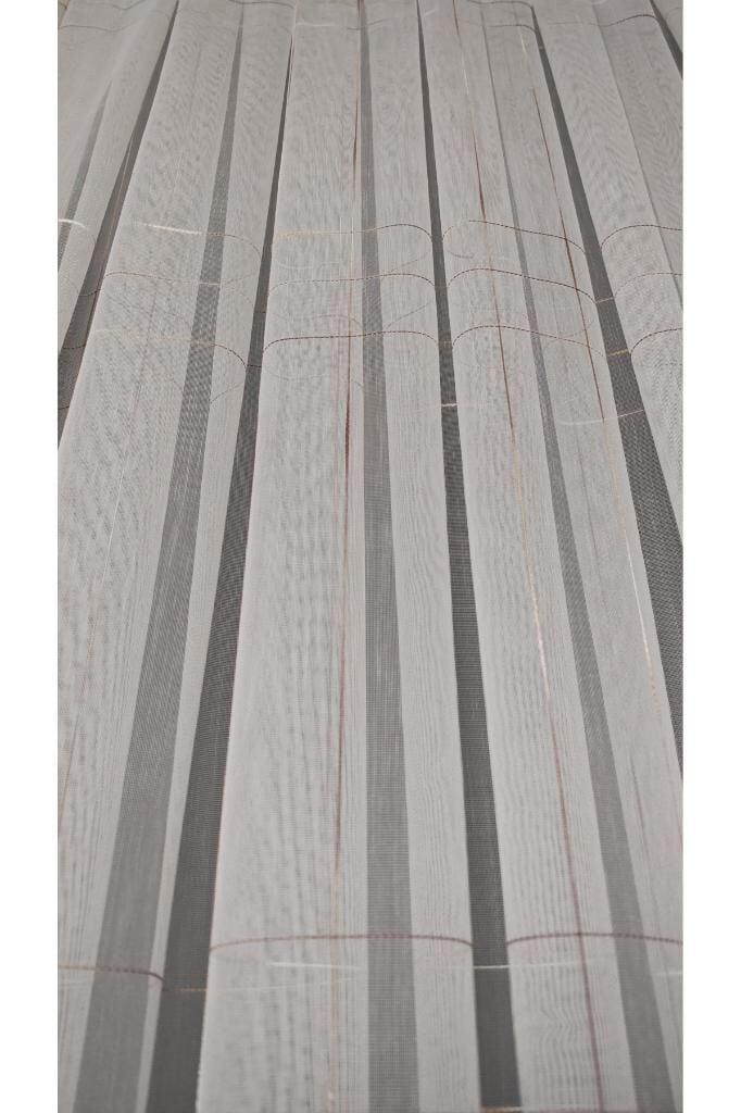 Ekru Bambu Zemin Kahve Çizgili Tül Perde 1/3 Sık Pile Kırışmaz Ütü İstemez Eteği Kurşunlu Ekru - 330 x 250