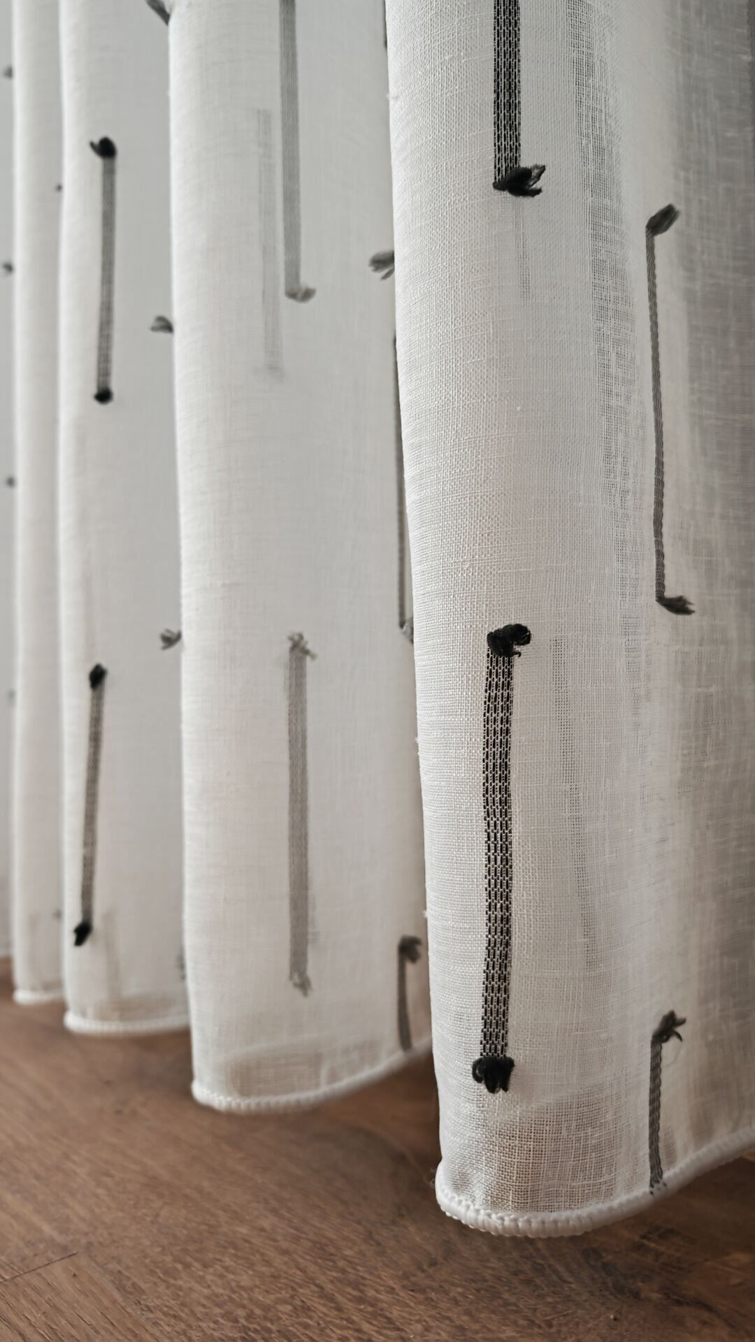 Ekru Keten Tül Perde Dikey Şeritli Kırışmaz Ütü İstemez Eteği Kurşunlu Her Odaya Uygun Ekru Siyah Şerit - 500 x 260 - Sık Pile ( 1 x 3 ) - Korniş