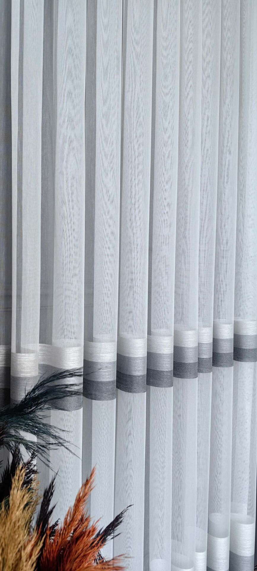 Ekru Keten Tül Perde Yatay 3 Şeritli Kırışmaz Ütü İstemez Eteği Kurşunlu Her Odaya Uygun Gri 3 Şerit - 500 x 260 - Sık Pile ( 1 x 3 ) - Korniş