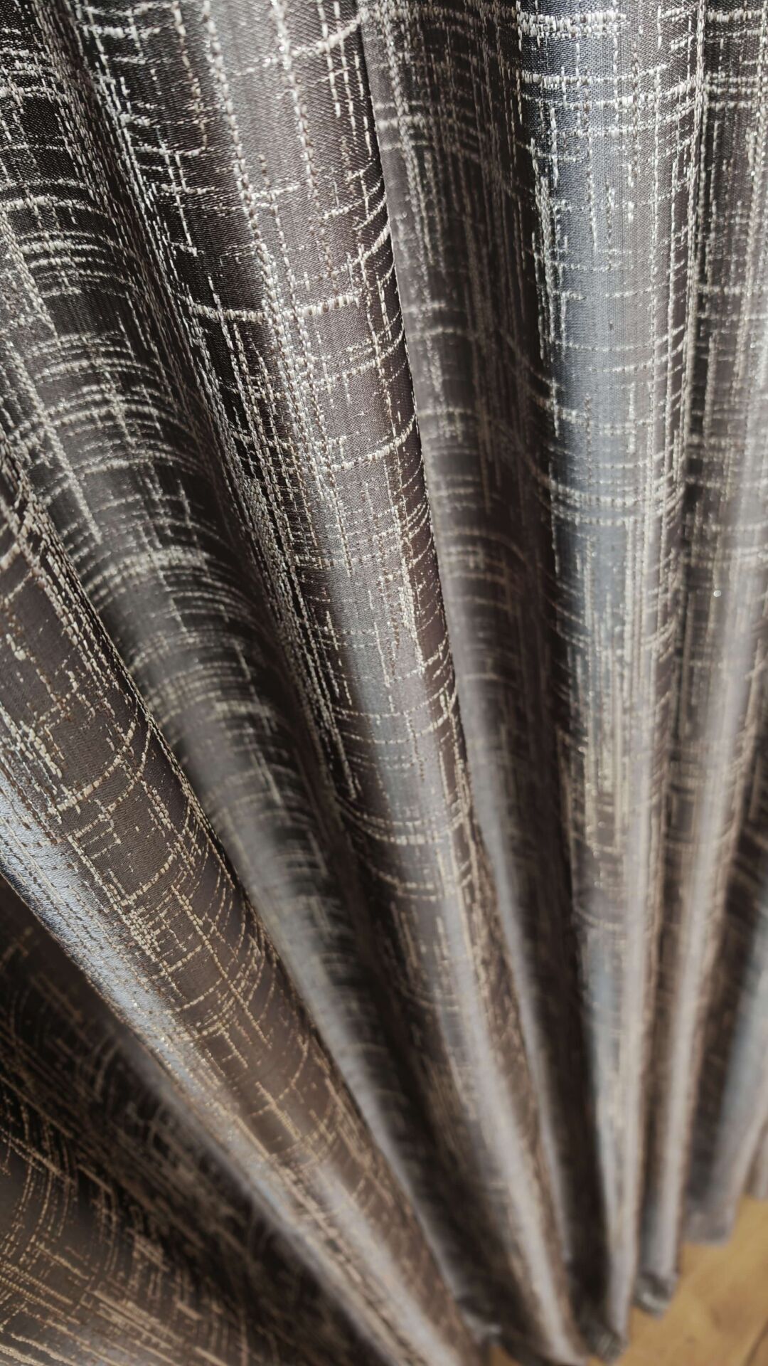 Gri Pano Fon Perde Dikey Çizgi Detay Tek Kanat 1/3 Sık Pileli Lüks Seri Ağır Gramajlı Parlak Krem - 110 x 250 - Sık Pile ( 1 x 3 ) - Korniş