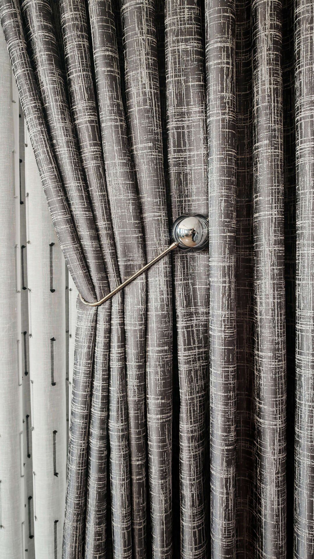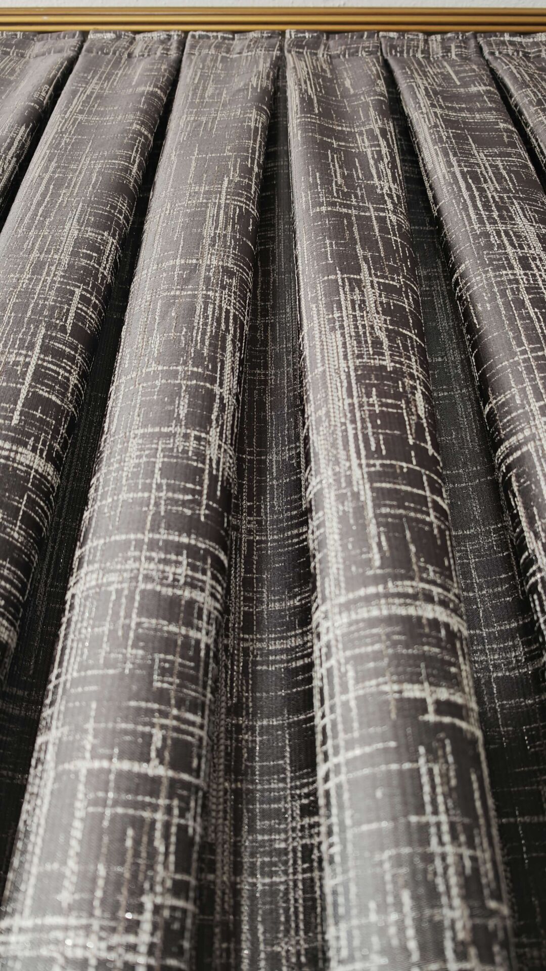 Gri Pano Fon Perde Dikey Çizgi Detay Tek Kanat 1/3 Sık Pileli Lüks Seri Ağır Gramajlı Parlak Vizon - 90 x 260 - Sık Pile ( 1 x 3 ) - Korniş