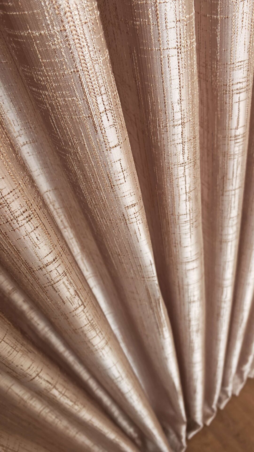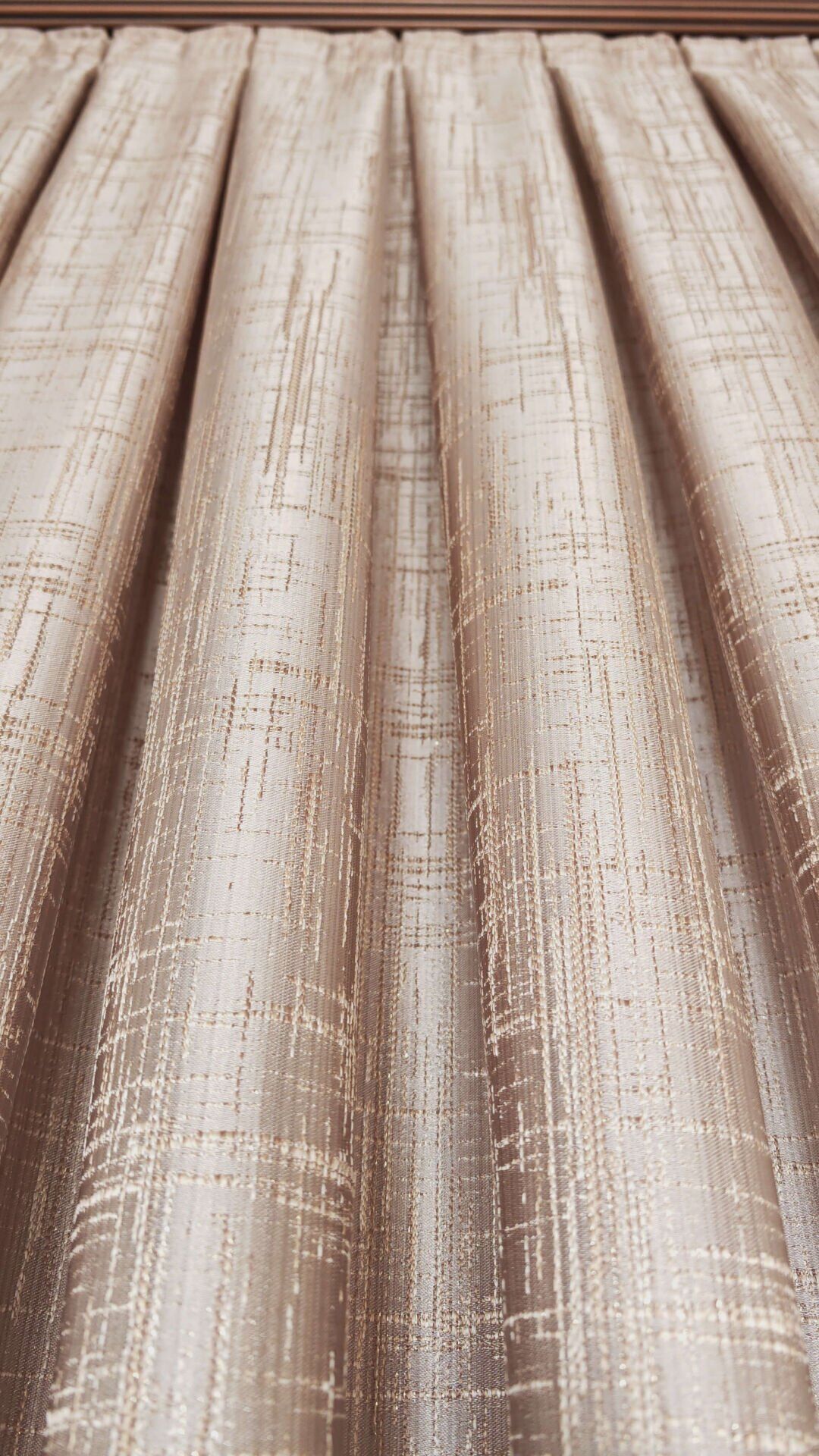 Krem Pano Fon Perde Dikey Çizgi Detay Tek Kanat 1/3 Sık Pileli Lüks Seri Ağır Gramajlı Parlak Kahve - 120 x 270 - Sık Pile ( 1 x 3 ) - Korniş