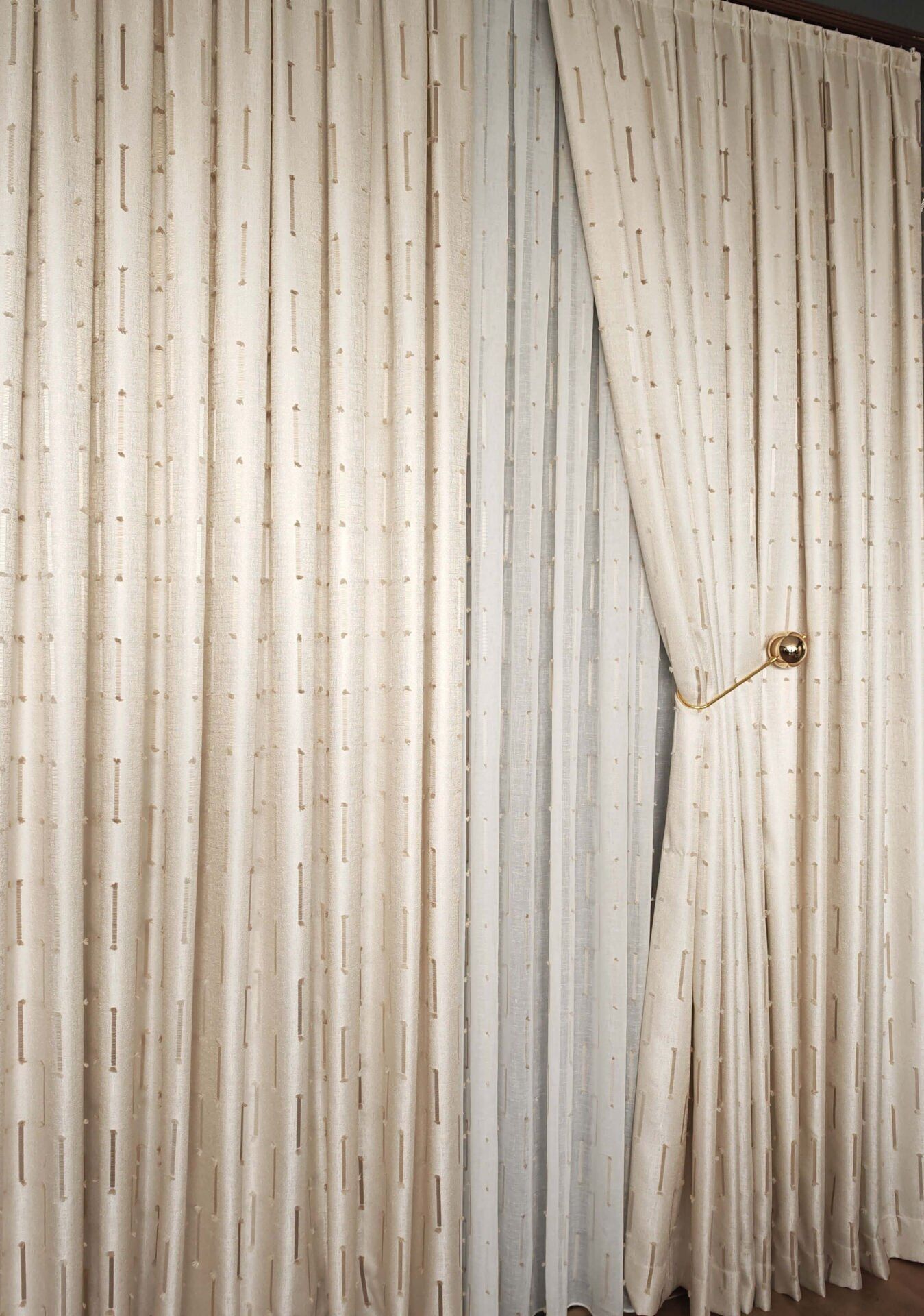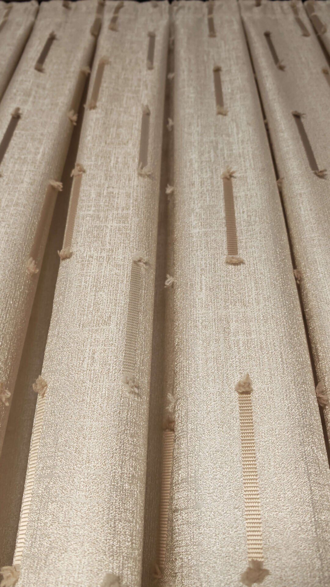 Krem Pano Fon Perde Dikey Çizgi Detay Tek Kanat 1/3 Sık Pileli Lüks Seri Ağır Gramajlı Parlak Krem - 120 x 270 - Sık Pile ( 1 x 3 ) - Korniş